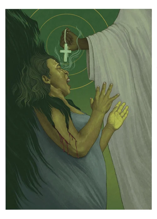 One half-page illustration, and a variety of spot illustrations, based on an article by Lainey Seyler about queer women in Wisconsin finding love using a Personals Instagram account.